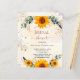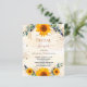 Un fond blanc et doré à l'aquarelle orné de tournesols, de verdure d'eucalyptus et de feuilles dorées et de paillettes d'or fausses. Personnalisez et ajoutez un nom et les détails de la fête.
