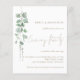 Invitation de mariage soirée eucalyptus pas chère avec texte doré champagne. Une alternative BUDGET intéressante pour un petit format 4,5 x 5,6” sur papier semi-brillant de 110lbs, d'une épaisseur similaire à une carte postale (mais ne peut pas être utilisée comme une carte postale). VEUILLEZ NOTER qu'il y a une invitation par feuille. Un style botanique minimaliste pour inviter vos invités de mariage en soirée. Un texte manuscrit pour "Soirée" et le reste du texte peut être facilement personnalisé. Une branche élégante de feuilles d'eucalyptus aquarellées court le long du côté gauche.