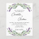 Un arrière - plan blanc décoré de fleurs de lavande et de verdure d'eucalyptus. Personnalisez et vos noms et détails. 1 feuille = 1 invite imprimé bord à bord.