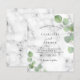 Marbre imprimé comme arrière - plan décoré de végétation d'eucalyptus, sprigs. Personnalisez et votre nom et les détails de la cérémonie.