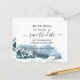 Un Save the Date de mariage tendance. Un fond blanc décoré avec un paysage hivernal enneigé. Personnalisez et ajoutez une date, un lieu et vos noms. Save the Date est écrit avec un style de script lettrage main moderne avec fioritures.