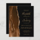 Le bord gauche de cette élégante invitation de mariage moderne présente une bordure d'agate aquarelle marron mocha rehaussée de paillettes dorées. Le texte personnalisable combine une écriture manuscrite dorée, des polices copperplate et italiques sur fond noir. Ajoutez des détails supplémentaires au verso, ainsi qu'un code QR pour aider vos invités à visiter votre site web de mariage.