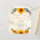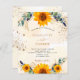 Un arrière - plan blanc et doré décoré de tournesols, de verdure d'eucalyptus et de feuilles dorés et de poussière de parties scintillant en faux or. Personnalisez et ajoutez vos noms et les détails de votre fête.
