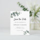 Les feuilles de eucalyptus vert poussiéreux donnent un aspect naturellement élégant à ces cartes "Save the Date" pour un mariage économique. Avec ses belles formations de feuilles aux nuances de bleu et de vert, l'eucalyptus est une illustration parfaite pour les mariages à thème floral ou naturel, les mariages en plein air dans un jardin, ainsi que les mariages d'hiver dans le sud. Le texte "Save the Date" est un élément graphique ; tous les autres textes au recto et au verso peuvent être facilement révisés sur le modèle de personnalisation. VEUILLEZ NOTER : Les cartes économiques n'incluent pas automatiquement d'enveloppes, car de nombreuses personnes préfèrent acheter les leurs. Il existe cependant une option pour commander des enveloppes en utilisant la flèche déroulante "option enveloppe".