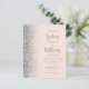 Le bord gauche de cette élégante faire-part de mariage moderne est orné d'une bordure en faux parties scintillant argenté. Le texte personnalisable combine le script de calligraphie gris et la police sans serif sur un arrière - plan rose vif. L'envers est assorti d'un design blush et argent.