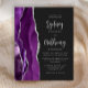 Le bord gauche de cette élégante faire-part de mariage moderne est orné d'une bordure d'aquarelle violette ornée d'une parties scintillant en faux argent. Le texte personnalisable combine le script de calligraphie gris argenté et la police sans serif sur un arrière - plan non noir. L'envers est assorti d'un design d'agate violet et argenté.
