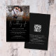 VEUILLEZ NOTER qu'il y a UN invitation par feuille. Budget Photo QR Code Script Faire-part de mariage. UNE GRANDE taille 5,5" x 8,5" à un prix abordable, VEUILLEZ NOTER QUE LES ENVELOPPES OPTIONNELLES SONT UN PEU PLUS GRANDES EN TAILLE À 6,75" x 9" env. Avec un code QR à votre site mariage à l'arrière afin que vos invités puissent RSVP et voir tous les détails en ligne sans besoin de pièces séparées. Votre code QR sera généré automatiquement pour mettre à jour l'exemple de code dans la conception, lorsque vous changez simplement l'exemple d'URL dans le modèle avec votre propre URL de site mariage. Une typographie informelle en blanc pour l'en-tête principal du Mariage De compléter le reste du texte que vous pouvez facilement personnaliser. Remplacez l'exemple de photo par votre préféré. Il est derrière un dégradé noir pour se fondre avec l'arrière - plan noir.