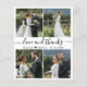 Elégant, minimaliste noir et blanc écrit à la main 4 photo collage mariage personnalisé merci personnalisé abordable carte THIN. ***VEUILLEZ NOTER, DÉPOSEZ POUR PLUS D'INFORMATIONS!*** modèle mariage élégant avec quatre (4) photos sur le devant et une (1) photo sur le côté arrière. Avec le texte "Amour et merci" dans une tourbillonnant typographie lettrée swash script de police de queue en noir sur arrière - plan blanc. Petite forme de coeur entre les noms. Personnalisez votre nom et merci message. ***VEUILLEZ NOTER! *** LE DOCUMENT BUDGÉTAIRE/VOL EST EN PAPIER MINCE. *** METTRE À NIVEAU LE PAPIER POUR UN PAPIER PLUS ÉPAIS. *** Carburant traditionnel avec enveloppes : https://www.zazzle.com/love_and_thanks_script_4_photo_collage_wedding_thank_you_card-256399236762935958 https://www.zazzle.com/love_and_thanks_script_photo_collage_wedding_thank_you_card-256150587736007499 Carte postale : https://www.zazzle.com/love_and_thanks_photo_collage_wedding_thank_you_postcard-256429336685296956 Si vous préférez écrire votre note à la main, supprimez simplement l'exemple de texte pour gagner de l'espace. +++ Si vous effectuez des modifications et que la conception est rognée ou n'a pas l'air droit sur l'écran, veuillez demander l'aide du service de design LIVE. Votre commande va directement aux imprimantes. Ce que vous voyez à l'écran est ce qui vous sera imprimé et envoyé. TRIPLE-VÉRIFIEZ donc toutes les informations, les photos et les fautes d'orthographe de votre texte parce que vous recevrez exactement ce que vous voyez, PERSONNE D'AUTRE NE VÉRIFIERA QUOI QUE CE SOIT AVANT L'IMPRESSION.