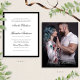 Donnez le ton de votre élégante fête grâce à notre Faire-part de mariage photo Formal Classic Black & White Script. Conçu avec raffinement à l'esprit, le devant présente une typographie de script raffinée pour les noms du couple et une police serif propre pour les détails de l'événement, le tout dans une palette noir et blanc intemporelle. Au verso, présentez une photo pleine page avec les noms de la mariée et du marié et la date du mariage pour une touche personnalisée. Parfait pour les mariages de style cravate noire ou victorien, cette invitation dégage une élégance et un charme intemporels, créant un souvenir époustouflant pour votre journée spéciale.