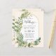 Feuilles verts modernes avec des accents d'or à thème faire-part de mariage, arche moderne.