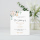 Un arrière - plan blanc chic. Décoré d'un blanc floral, de fleurs (pivoine) et de feuilles d'eucalyptus vert aquarellés, de sprigs, de verdure et d'un faux doré. Personnalisez et ajoutez vos noms et les détails du mariage. Lettres noires et dorées. Dos : couleur arrière - plan verte.