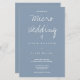 Faire-part de mariage sur papier économique pour un micro-mariage. Cette invitation sur papier léger est réalisée dans des tons bleu poussiéreux et blanc avec juste assez d'informations pour emporter le morceau. Ajoutez simplement vos informations, ajoutez cette invitation à votre panier, et profitez de votre mariage intime et convivial.
