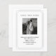 Le design est épuré et classique, noir et blanc, ce qui le rend minimaliste et élégant. Il dispose d'une simple bordure à deux lignes avec des détails d'angle ronds qui encadrent la disposition. Il y a aussi une photo au centre que le couple peut personnaliser. Le mélange de polices de script et de serif est comme la calligraphie traditionnelle, mais avec une touche moderne. Un bon choix pour les couples qui aiment le style minimaliste avec une touche de charme vintage.