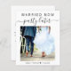 Un aménagement moderne abordable ou un petit faire-part mariage pour informer la famille et les amis que vos plans de mariage ont changé, vous obligeant à fuir ou à réduire le nombre d'invités à votre mariage, mais que vous allez accueillir une fête dans l'avenir. Le devant présente votre photo et "Marié maintenant, Parti plus tard" dans un mélange de typographie simple et de script tendance. Sous votre photo, vous pouvez ajouter vos prénoms et votre date de mariage. Au verso, vous pouvez personnaliser votre message de manière plus détaillée et vos noms dans un script de type signature.