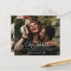 Ce Faire-part de mariage photo de script budgétaire comporte un type simple et des noms manuscrits avec une photo horizontale à fond saigné sur le devant. Le dos a une deuxième photo. Tous les éléments sont modifiables, police, photo et couleur arrière - plan. Cliquez sur le bouton Modifier pour customiser cette conception.