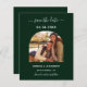 Un mariage moderne Save the Date carte photo. Un arrière - plan vert émeraude, texte blanc. Personnalisez et ajoutez vos photos et détails de mariage.