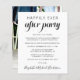 Un hébergement économique ou une petite réception mariage et mariage ou une invitation à célébrer un faire-part. Le devant présente "Happily Ever After Party" dans un mélange de typographie simple et d'écriture contemporaine. Personnalisez votre message et votre invitation de manière plus détaillée et ajoutez vos noms dans un script de type signature. Au verso, vous trouverez votre photo de mariage préférée, vos prénoms et votre date de mariage.