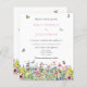 Bohème, simple et moderne, cette invitation de mariage à fleurs sauvages et à petit prix présente un champ aux couleurs vives de belles fleurs sauvages avec des papillons, des bourdons et des coccinelles volant autour.