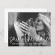 Enregistrer la date de mariage avec votre photo horizontale en plein champ avec une superposition de typographie avec les mots "enregistrer la date" dans une fine police de caractères cursive blanche. En dessous, une ligne de texte pour les détails de votre mariage. Le verso comporte les mots "invitation à suivre" dans la même police de caractères et peut être supprimé en cliquant sur le bouton "personnaliser". Un design simple et élégant qui fait de votre photo l'élément principal.