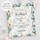 Fleurs vert et blanc poussiéreux en arrière - plan. Personnalisez et ajoutez vos noms et détails. 1 feuille = 1 invite imprimé bord à bord.