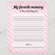 Papier Mémoire préférée du jeu de fille d'anniversaire