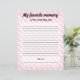 Créez des souvenirs durables avec Favorite Memory of the Birthday Girl! Dotée d'un design charmant avec des rayures roses et des accents de parties scintillant, cette feuille mémoire permet aux clients d'écrire leurs souvenirs préférés de la fille d'anniversaire. C'est une touche personnelle et chaleureuse qui ajoute chaleur et amour à toute célébration. Parfaits pour les anniversaires, les douches, et plus encore, ces draps peuvent être collectés et chéris comme un souvenir. Encouragez vos invités à partager leurs moments spéciaux et à rendre la fête d'anniversaire encore plus mémorable!
