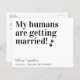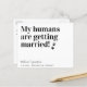 Mes humains se marient ! Laissez votre meilleur chien annoncer votre mariage avec ces cartes de save the date / invitations de mariage modernes et simples "Mes humains se marient" pour chiens. Ces invitations de mariage avec code QR sont parfaites lorsque vous souhaitez conserver toutes les informations de mariage sur votre site web, et pas de soucis d'oublis de RSVP. Ces invitations de mariage en ligne amusantes pour animaux de compagnie sont le moyen idéal pour simplifier vos réponses aux invitations de mariage, apporter des modifications aux détails, dates ou au lieu, c'est aussi simple que quelques frappes de touches. Cette annonce de save the date de mariage de chien sera un succès auprès de votre famille et de vos amis. COPYRIGHT © 2020 Judy Burrows, Black Dog Art - Tous droits réservés. Mon humain se marie Chien Mariage Code QR