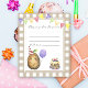 Une Petite Pomme De Terre Sucrée. Fête anniversaire de enfant de l'aquarelle. Aquarelle patate kawaii mignonette en casquette d'anniversaire, gâteau aux baies, ballon violet, guirlande festive de drapeaux. Arrière - plan en cage beige-marron.