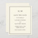 Budget ivoire/crème simple économisez la date avec un design moderne mais élégant avec votre monogramme à deux lettres en haut et vos détails mariages entourés d'une mince bordure. Un design chic et design qui conviendra à un couple minimaliste.