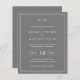Faire-part de mariage économique simple avec un design moderne et élégant avec votre monogramme à deux lettres en haut, une mise en page audacieuse et vos détails entourés d'une fine bordure. Tous les éléments de conception sont en blanc sur un arrière - plan gris moyen et peuvent être modifiés dans l'outil d'édition de conception. Un design chic et design qui conviendra à un couple minimaliste.