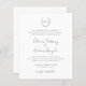 Faire-part de mariage à budget noir et blanc traditionnel et classique avec une crête mariage avec votre monogramme à l'intérieur d'une couronne avec vos noms dans un script / calligraphie. Cette invitation simple mais élégante est idéale pour un mariage formel.