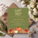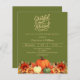 Un arrière - plan vert mousse. Décoré de fleurs citrouilles et orange et jaune. Personnalisez et ajoutez les détails de la fête. Texte : Grateful and Blessed. 1 feuille = 1 invite imprimé bord à bord.