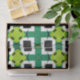 Motif géométrique sans couture aux formes géométriques en vert, noir et blanc.