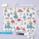 Alice vintage au pays des merveilles Papier d'emballage illustrant Alice, lapin, champignon rouge et fleurs pour l'emballage cadeau et vos projets de découpage.