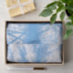 Un design artistique en bleu d'un arbre d'hiver.