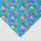 Ce papier-mouchoir coloré pour les amateurs de Parson / Jack Russell Terrier est doté d'un motif de quatre JRT / PRT différents avec des marques variées de tête/corps brun et noir et d'une charmante inclinaison de tête de chien debout sur leurs matelas flottants colorés bleu, rose, orange et citron vert avec une balle de tennis dans une piscine bleu clair, entourée de nouilles et boules jaunes jouets à mâchoire flottante en forme de forme - Parson / Jack Russell pool party © katz_d_zynes 2021