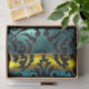 PAPIER MOUSSELINE BLEU BLACK DAMASK JAUNE MONOGRAM EN PIERRE JAUNE F