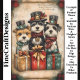 Papier Mousseline Chiens mignons de Noël Steampunk Vibe BK9 Découpag