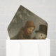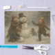 A beautiful soft scene of children having fun building a snowman. It gives off a old time feel.