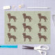 Illustration originale de Destei d'un chien de race Labrador Retriever de couleur chocolat. Le design est placé plusieurs fois en faisant un petit motif. La couleur arrière - plan est verte avec une texture décorative. La texture peut être enlevée et la couleur arrière - plan peut être changée en n'importe quelle autre couleur, si vous le souhaitez.