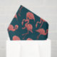 Motif vectoriel avec flamants dessinés à la main en couleur corail vivant sur arrière - plan bleu foncé.
