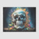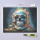 Ce design présente un crâne saisissant éclairé par un riche arrière - plan noir, orné de détails complexes et d'éléments floraux subtils. Il capture un mélange dynamique de styles pointus et ludiques, ce qui en fait l'idéal pour ajouter une touche audacieuse à vos projets de découpage