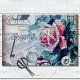 Presse de journaux éphémère avec voitures anciennes, traîneau et horloge ou montre de poche, squelette vintage, rose rose rose et diamant blanc.