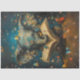 Un grand éléphant stylisé, aux tons gris/marron foncé, est placé de façon centrale. Ses yeux sont accentués et possèdent un regard sage, presque conscient. Le tronc de l'éléphant tourne doucement vers un livre ouvert qu'il semble tenir ou reposer. Le livre est une riche couleur doré-beige avec du texte visible, mais l'accent est mis sur les éléments fantastiques. D'innombrables papillons de différentes couleurs vibrantes - bleus, oranges, jaunes, rouges et violets - flottent autour de l'éléphant et au-dessus du livre, créant un sentiment de mouvement et de magie. Ces papillons sont également stylisés et ne respectent pas nécessairement une représentation strictement réaliste. L'arrière - plan est un bleu turquoise profond, trempé de petites particules scintillantes qui ajoutent de la profondeur et un sentiment d'émerveillement cosmique. Un petit oiseau est perché sur le livre ouvert. Le style de la pièce est onirique et surréaliste, mêlant des figures animales et humaines. L'impression générale est d'une scène magique, représentant peut-être un lien entre l'apprentissage, la nature et l'imagination. Le style suggère une approche imaginaire ou illustrative de la matière. Immergez-vous dans un monde fantasque et imaginatif avec cette image enchanteresse. Voyez un éléphant profondément absorbé par la lecture d'un livre, tandis que des papillons colorés volent magiquement des pages, créant une atmosphère surréaliste. Encadrée par un arrière - plan bleu profond et étoilé, cette scène captivante mêle parfaitement nature et narration, ce qui en fait un régal visuel. Idéale pour les thèmes de la créativité, de l'imaginaire et de l'émerveillement, cette image donne vie à un sens de la magie et des possibilités infinies. scène fantaisie d'éléphants, oeuvre d'art imaginative, lecture d'éléphants, papillons colorés, atmosphère magique, image surréaliste, arrière - plan bleu étoilé, narration créative, imaginaire, plaisir visuel.