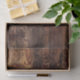 Un motif en forme de pochoir de fleurs brun foncé et en détresse recouvre un arrière - plan de bois rustique brun. Parfait pour l'art de la découpage, l'artisanat du papier ou l'emballage de cadeaux. Assurez-vous de retirer le sac cadeau correspondant!