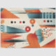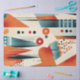 L'image est une oeuvre d'art abstraite avec une variété de formes géométriques et de motifs. La palette de couleurs comprend des tons orange, bleu, noir et blanc. La composition se compose de triangles tranchants, de cercles, de points et de lignes disposés de manière dynamique et visuellement engageante. L'interaction des couleurs et des formes crée un sens du mouvement et de la profondeur, ce qui rend l'image intéressante et stimulante visuellement. Artisanat géométrique abstrait, formes géométriques colorées, art abstrait orange et bleu, motifs géométriques dynamiques, art visuellement attrayant, composition abstraite moderne, design géométrique artistique, image abstraite vibrante.