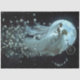"L'art surréaliste avec une mariée squelette sur un vélo dans l'espace avec une toile de fond de lune - une juxtaposition éthérée de thèmes de la vie et de la mort idéale pour des discussions artistiques ou conceptuelles. rhdesigns, papiers de tissu découpage, mariée squelette, vélo, espace, fond de lune, art surréaliste, vie et mort, éthérée." L'image représente une scène surréaliste et artistique où un squelette dans une robe blanche flottante de mariée roule à vélo dans l'espace. Le squelette tient ce qui semble être un bouquet de fleurs, et il y a des pétales éparpillés autour, créant un sentier derrière la bicyclette. Dans l'arrière - plan, une grande lune illumine la scène avec son éclat. Cette image mêle des éléments associés à la vie et à la mort, créant une esthétique éthérée et autre.