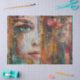 Although I liked the image on zazzle when I received it I wasn't as happy. The eyes/look of the lady are kind of disturbing to me. But that is me (this is why I take off 1 star). you have to like this kind of picture. We'll see how I am going to use the paper. Once again, the visible folding white line in the middle of the image is extremely annoying. You do not have this problem with the thicker paper. So definitely recommend the thicker one.