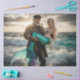 This cinematic decoupage sheet captures a mythic moment of sea-bound devotion: a weathered captain stands in the crashing surf, pipe clenched between his teeth, cradling a platinum-haired mermaid with a vibrant turquoise and purple tail. Her seashell-and-pearl top and lace gloves shimmer in the golden light of a setting sun, while storm clouds swirl above the horizon. His dark coat and gloves evoke maritime grit, anchoring the fantasy in realism. Perfect for mixed media, furniture art, or seasonal collage, this richly textured image blends folklore, romance, and nautical legend — ideal for tribute pieces, storytelling layers, or faith-inspired creative branding.