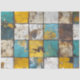 Cet arrière - plan de découpage à motifs de carreaux en difficulté dispose d'une grille de carreaux carrés dans les tons turquoise, jaune, blanc et marron, chacun avec une texture patinée et rustique. Les surfaces fissurées, écaillées et usées confèrent à la conception un charme vintage et antique, ce qui en fait l'endroit idéal pour les projets créatifs, le décor chic et le mélange d'artisanat. impression de carreaux rustiques vintages, papier d'artisanat vieilli, design arrière - plan texturé antique, motif décoratif shabby-chic, texture de carreaux artistiques patinés, art de surface mélangé, décoration de style de style de ferme, illustration de carreaux fissurés, esthétique décorative de l'ancien monde